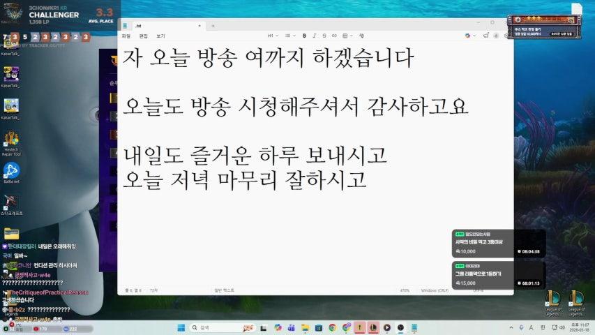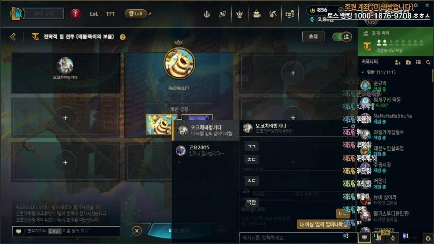 롤토체스,롤,랭크,칼바람 신입 채팅 전부 읽어드립니다